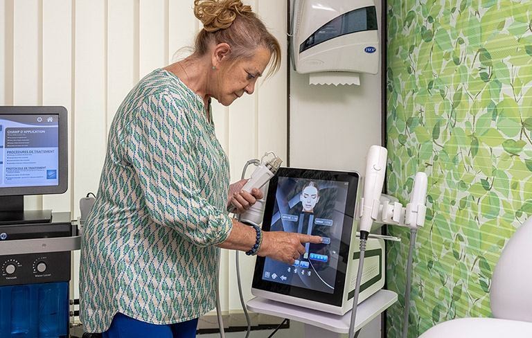 La Radiofréquence est une technique qui agit en chauffant l’eau du derme afin d’entrainer une néosynthèse de collagène et de fibres élastiques. Il existe 3 techniques : tightening, mode fractionné et micro aiguille, dont l’indication sera posée lors de la consultation préalable. La Radiofréquence permet notamment :